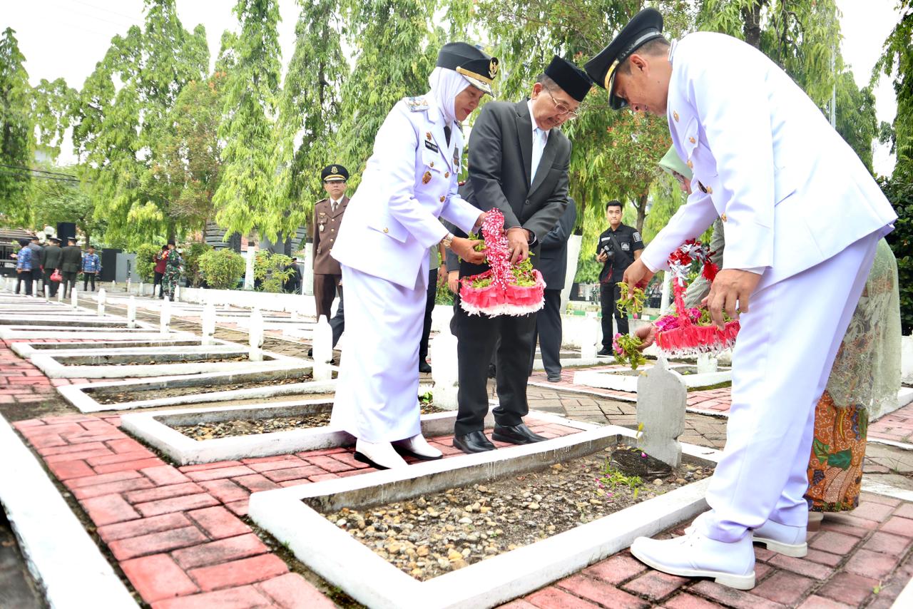 Headline.co.id, Bojonegoro ~ Dalam rangka memperingati Hari Pahlawan Tahun 2025, Bupati Bojonegoro Setyo Wahono bersama jajaran Forum Koordinasi Pimpinan Daerah (Forkopimda) dan Legiun Veteran Republik Indonesia (LVRI) mengadakan ziarah dan tabur bunga di Taman Makam Pahlawan (TMP) Bojonegoro pada Senin (10/11/2025). Kegiatan ini bertujuan untuk menghormati jasa para pahlawan sekaligus menanamkan nilai patriotisme dan nasionalisme kepada generasi penerus bangsa.