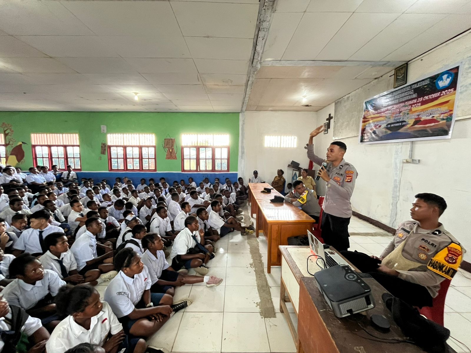 Setibanya di sekolah, rombongan Polres Tolikara disambut hangat oleh Kepala Sekolah dan para guru. Sebanyak 111 siswa kelas IX hadir dalam kegiatan yang berlangsung di aula sekolah tersebut. Dalam sambutannya, Kasat Binmas Ipda Kasrim, S.E. mengapresiasi pihak sekolah atas kesempatan yang diberikan untuk menyampaikan informasi penting ini. Ia berpesan kepada para siswa untuk fokus belajar, mengejar cita-cita, dan membahagiakan orang tua.