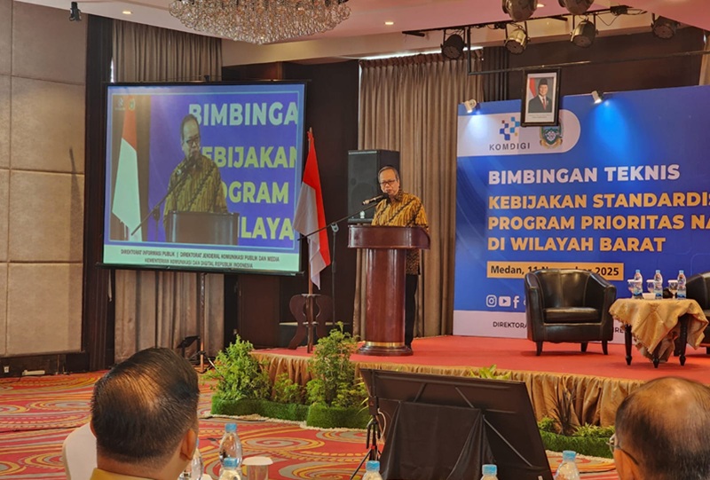 Headline.co.id, Medan ~ Kementerian Komunikasi dan Digital (Kemkomdigi) melalui Direktorat Informasi Publik menginisiasi penerapan kebijakan standardisasi konten di lingkungan pemerintah pusat dan daerah. Langkah ini bertujuan untuk memperkuat komunikasi pembangunan menuju Indonesia Emas 2045. Dalam acara yang berlangsung di Medan, Sumatra Utara, pada Selasa (11/11/2025), Direktur Informasi Publik Kemkomdigi, Nursodik Gunarjo, menekankan pentingnya penyampaian pesan pembangunan yang konsisten, akurat, dan mudah dipahami oleh masyarakat.