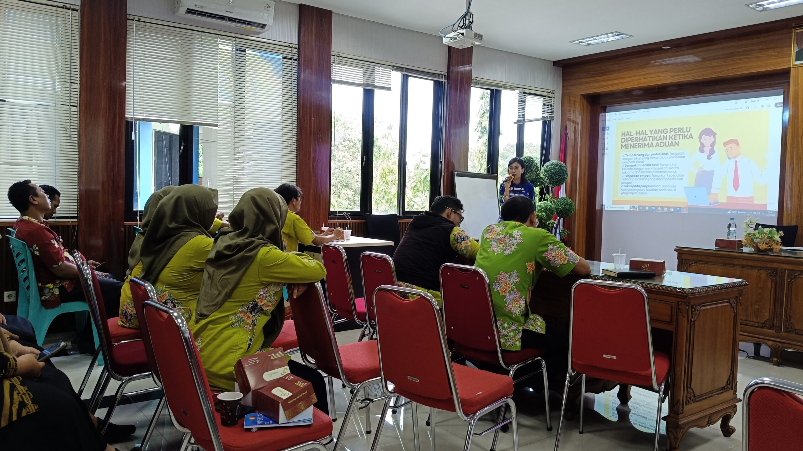 Headline.co.id, Demak ~ Pemerintah Kabupaten Demak menekankan pentingnya pelayanan informasi kehumasan dalam membangun komunikasi yang efektif organisasi dan masyarakat. Hal ini disampaikan oleh Desy Rahmawati, Pranata Humas Ahli Muda dari Dinas Komunikasi dan Informatika Kabupaten Demak, dalam acara Sosialisasi dan Internalisasi “Praktek Baik Pengelolaan Arsip, Penyusunan SOP dan SP, Pelayanan Kehumasan serta Manajemen ASN” yang diadakan di Aula DINPUTARU Kabupaten Demak pada Kamis, 13 November 2025.