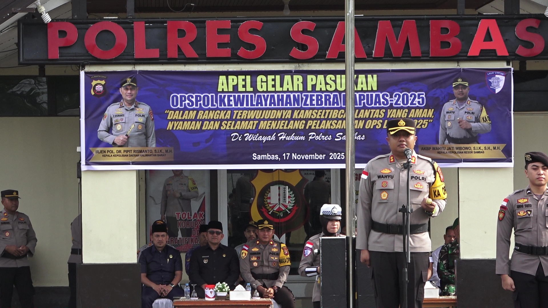 Headline.co.id, Sambas ~ Polres Sambas memulai Apel Pasukan Operasi Zebra Kapuas 2025 pada Senin, 17 November 2025, di Kabupaten Sambas. Operasi ini bertujuan untuk meningkatkan keamanan, keselamatan, ketertiban, dan kelancaran lalu lintas di wilayah tersebut. Operasi Zebra Kapuas 2025 akan berlangsung dari 17 hingga 30 November 2025, dengan tema “Terwujudnya Keamanan, Keselamatan, Ketertiban dan Kelancaran Lalu Lintas yang Aman, Nyaman, dan Selamat Menjelang Pelaksanaan Ops Lilin 2025 di Wilayah Hukum Polres Sambas.”