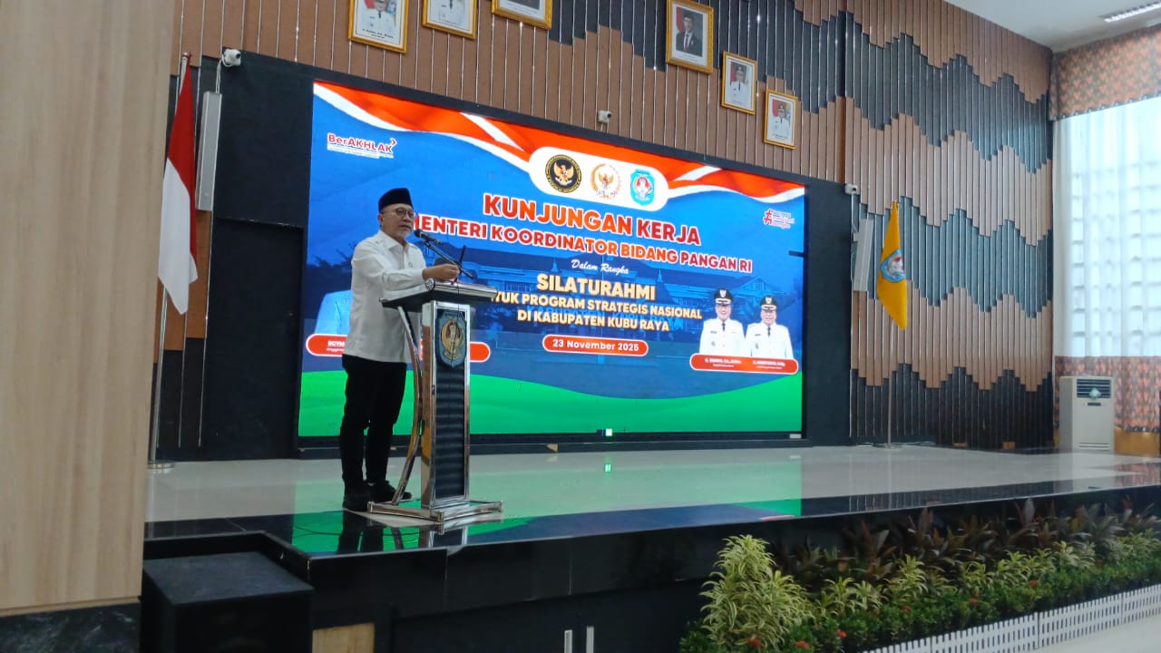 Headline.co.id, Kubu Raya ~ Pemerintah berencana memperkuat suplai protein untuk program Makan Bergizi Gratis (MBG) dengan membangun tambak ikan dan desa nelayan baru. Menteri Koordinator Bidang Pangan, Zulkifli Hasan, menyatakan bahwa 82,9 juta penerima manfaat MBG akan mendapatkan menu bergizi yang disiapkan pemerintah. Hal ini disampaikan dalam acara silaturahmi Menko Bidang Pangan untuk Program Strategis Nasional di Aula Kantor Bupati Kubu Raya, Minggu (23/11/2025).