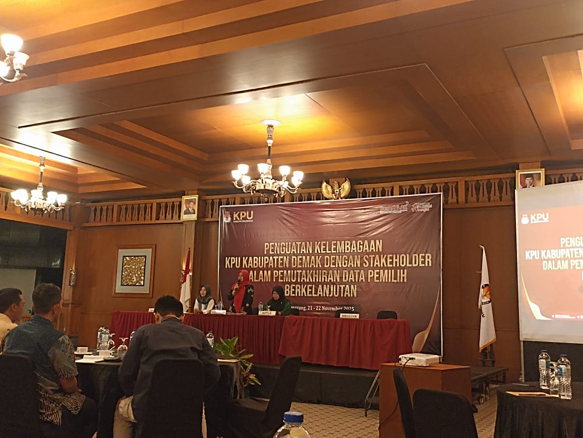 Headline.co.id, Bandungan ~ Komisi Pemilihan Umum (KPU) Kabupaten Demak mengadakan kegiatan Penguatan Kelembagaan bersama para pemangku kepentingan terkait untuk memperbarui Data Pemilih Berkelanjutan. Acara ini berlangsung di Griya Persada Convention Hotel & Resort Bandungan pada Jumat hingga Sabtu, 21–22 November 2025. Kegiatan ini dihadiri oleh Forum Koordinasi Pimpinan Daerah (Forkopimda), camat se-Kabupaten Demak, serta unsur terkait lainnya.