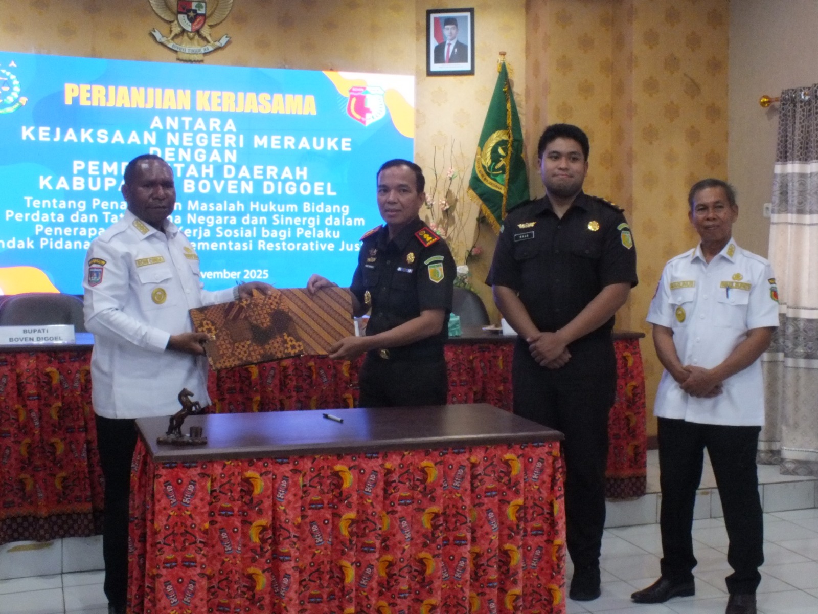 Headline.co.id, Boven Digoel ~ Pemerintah Kabupaten Boven Digoel dan Kejaksaan Negeri (Kejari) Merauke telah memperpanjang Nota Kesepahaman (MoU) dan Perjanjian Kerja Sama di bidang perdata dan tata usaha negara (TUN) pada Rabu, 19 November 2025. Kesepakatan ini bertujuan untuk memperkuat sinergi dalam pelaksanaan pidana kerja sosial sebagai bagian dari pendekatan restorative justice.