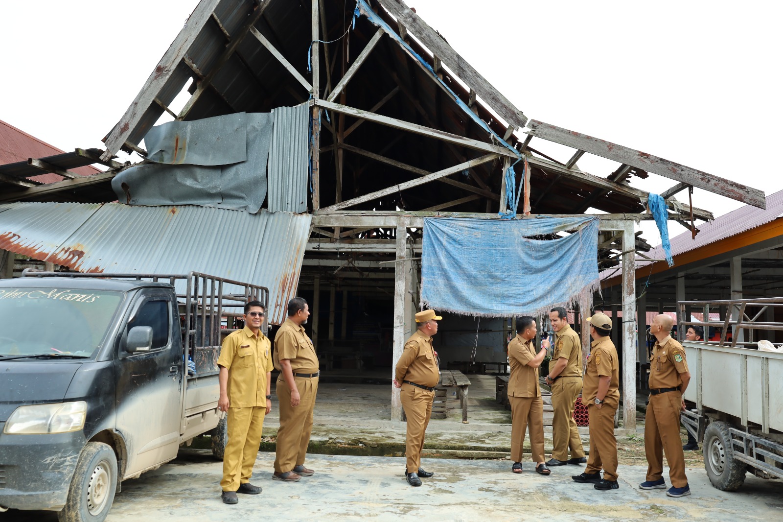 Dalam kunjungannya, Sekda bersama perangkat daerah juga melakukan pengecekan langsung untuk memastikan kondisi lapangan dan menentukan tindak lanjut perbaikan. “Melihat kondisi bangunan, kita berharap pasar ini dapat dibangun secara permanen agar para pedagang nyaman berjualan dan pembeli juga merasa aman,” kata Mahadar.