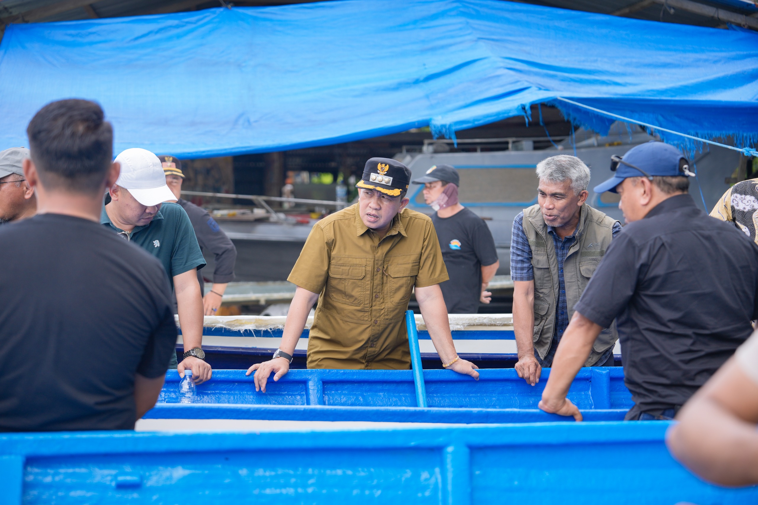 Dalam rangkaian kunjungan tersebut, Bupati juga mengunjungi galangan kapal di Desa Paku untuk mengecek progres pekerjaan yang ditangani oleh dinas terkait. Ia menekankan pentingnya koordinasi Dinas Perhubungan dan Dinas Perikanan agar tidak terjadi tumpang tindih program. “Kita lagi menyamakan persepsi, jangan sampai tumpang tindih. Kalau perhubungan itu urusan transportasi, sementara urusan perikanan atau nelayan berarti itu urusan dinas perikanan. Nah itu yang kita pastikan,” tegasnya.