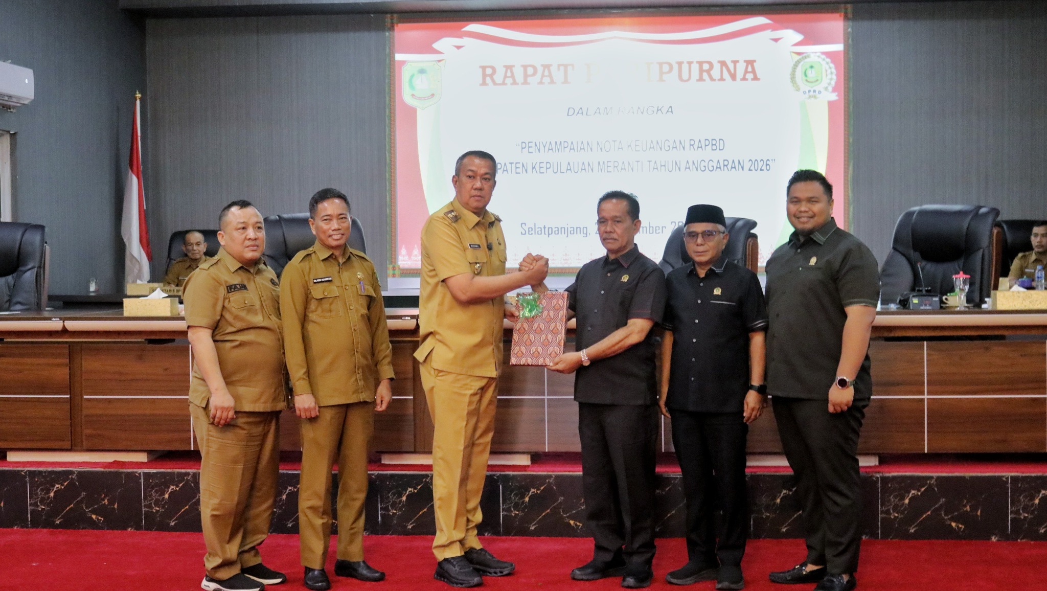 Headline.co.id, Selatpanjang ~ Pemerintah Kabupaten Kepulauan Meranti telah menyerahkan Nota Keuangan Rancangan Anggaran Pendapatan dan Belanja Daerah (RAPBD) Tahun Anggaran 2026 kepada Dewan Perwakilan Rakyat Daerah (DPRD) dalam Rapat Paripurna yang diadakan di Balai Sidang DPRD Kepulauan Meranti pada Senin, 24 November 2025. Wakil Bupati Kepulauan Meranti, Muzamil Baharudin, menyatakan bahwa penyusunan RAPBD 2026 ini didasarkan pada visi dan misi pemerintah daerah serta mengakomodasi aspirasi masyarakat di berbagai sektor pembangunan.