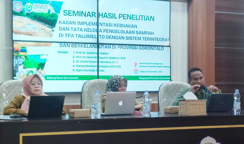 Ketua tim peneliti, Sukirman Rahim, bersama anggota tim lainnya, menyampaikan rekomendasi ini dalam seminar hasil penelitian mengenai kebijakan dan tata kelola pengelolaan sampah di TPA Talumelito. “Tujuan penelitian ini adalah untuk menganalisis faktor yang mempengaruhi pengelolaan sampah di TPA Talumelito dan mendeskripsikan kebijakan serta tata kelola yang harus dilakukan pemerintah,” ujar Sukirman Rahim pada Selasa (25/11/2025).