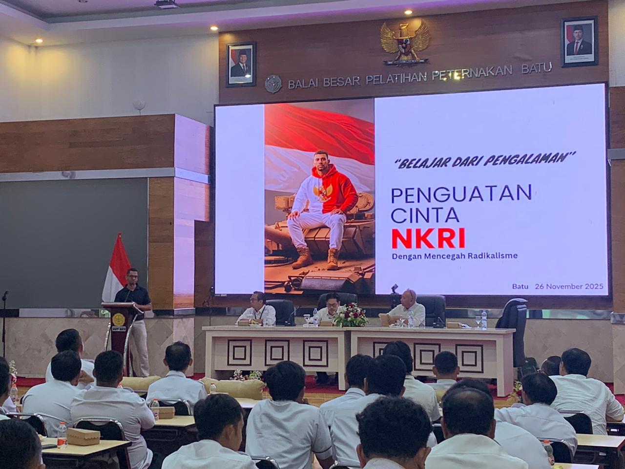 Headline.co.id, Batu ~ 26 November 2025 – Densus 88 AT Polri bersama seorang mantan narapidana terorisme (napiter) mengadakan kegiatan Sosialisasi Kebangsaan di Balai Besar Pelatihan Peternakan (BBPP) Batu. Acara ini diikuti oleh 104 pegawai ASN/PPPK BBPP Batu. Kompol Dani Teguh Wibowo, yang mewakili Densus 88 AT Polri, menyatakan bahwa kegiatan ini bertujuan untuk meningkatkan kesadaran akan bahaya paham intoleransi, radikalisme, ekstremisme, dan terorisme.
