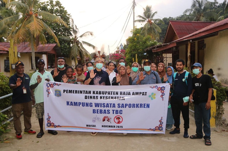 Headline.co.id, Raja Ampat ~ Dinas Kesehatan Kabupaten Raja Ampat, melalui Bidang Pencegahan dan Pengendalian Penyakit, meluncurkan program Penguatan Branding “Kampung Wisata Raja Ampat Bebas TBC” di Kampung Saporkren, Distrik Waigeo Selatan, Papua Barat Daya. Kegiatan ini berlangsung pada Jumat (28/11/2025) dan bertujuan untuk mewujudkan pariwisata sehat di wilayah tersebut.