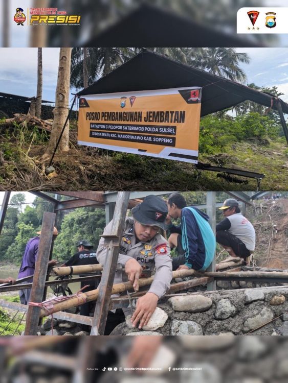 Menindaklanjuti arahan tersebut, Satbrimob Polda Sulawesi Selatan di bawah pimpinan Kombes Pol. M. Ridwan, S.I.K. mengerahkan satu SST personel dengan keahlian Vertical Rescue dan Light Field Engineering (LFE) untuk membantu pembangunan jembatan gantung di Kabupaten Soppeng pada Minggu (30/11/25). Jembatan ini akan menghubungkan tiga desa, yaitu Desa Watu, Desa Mariritenggae, dan Desa Marioriaja di Kecamatan Marioriwawo, yang selama ini dipisahkan oleh sungai. Warga setempat selama ini hanya mengandalkan ban dalam mobil dan rakit untuk menyeberang, termasuk bagi anak sekolah.