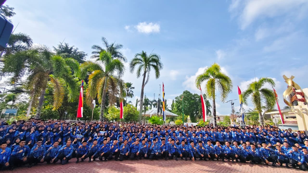 Headline.co.id, Amuntai ~ Ratusan Aparatur Sipil Negara (ASN) di lingkungan Pemerintah Kabupaten Hulu Sungai Utara (HSU) mengikuti apel peringatan Hari Korpri ke-54 yang dilaksanakan di halaman Kantor Bupati HSU pada Senin (1/12/2025). Acara ini mengusung tema “Bersatu, Berdaulat, Bersama KORPRI dalam Mewujudkan Indonesia Maju” dan dipimpin langsung oleh Bupati HSU, Sahrujani. Hadir pula dalam acara tersebut Wakil Bupati Hero Setiawan, Sekretaris Daerah, para kepala SKPD, pejabat struktural dan fungsional, serta seluruh ASN di lingkup Pemerintah Kabupaten HSU.