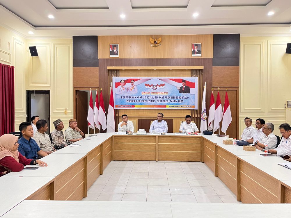 Headline.co.id, Gorontalo ~ Pemerintah Provinsi Gorontalo mengadakan Rapat Koordinasi Rencana Aksi Penanganan Konflik Sosial (RAD-PKS) untuk periode B12, yang mencakup bulan September hingga Desember 2025. Pertemuan ini berlangsung di aula Badan Kesatuan Bangsa dan Politik (Kesbangpol) Provinsi Gorontalo pada Rabu, 3 Desember 2025. Acara tersebut dibuka secara resmi oleh Staf Ahli Gubernur Bidang Pemerintahan, Hukum, dan Politik, Masran Rauf, yang mewakili Sekretaris Daerah Provinsi (Sekdaprov) Gorontalo, Sofian Ibrahim.