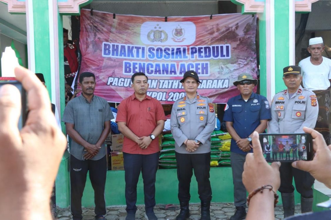 Headline.co.id, Pidie Jaya ~ 6 Desember 2025 – Kapolres Pidie Jaya, AKBP Ahmad Faisal Pasaribu, menyerahkan bantuan dari Paguyuban Tathya Dharaka Akpol 2005 kepada warga yang terdampak banjir bandang di Gampong Alue Ketapang, Kecamatan Bandar Dua, Kabupaten Pidie Jaya. Bantuan ini juga ditujukan untuk personel Polres Pidie Jaya yang rumahnya terkena dampak banjir. Penyerahan bantuan dilakukan pada Jumat, 5 Desember 2025.