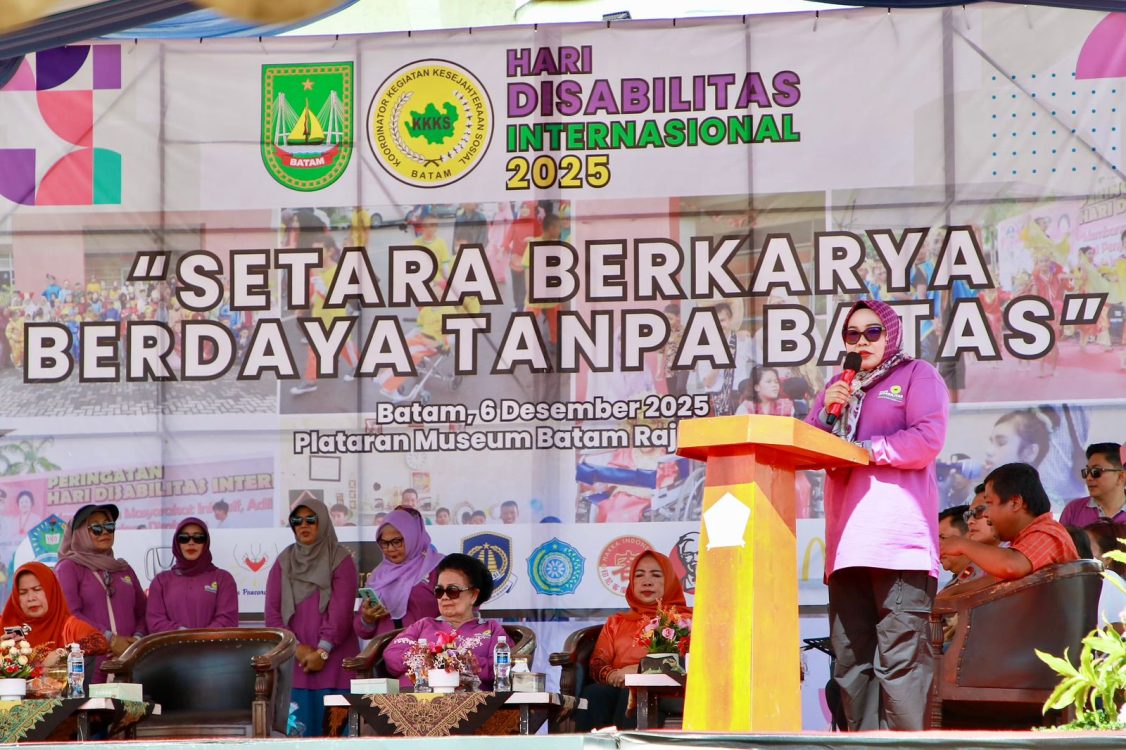 Headline.co.id, Batam ~ Ketua Tim Penggerak Pemberdayaan dan Kesejahteraan Keluarga (TP-PKK) Kota Batam, Erlita Amsakar, menghadiri acara peringatan Hari Disabilitas Internasional (HDI) yang diselenggarakan oleh Koordinator Kegiatan Kesejahteraan Sosial (KKKS) Kota Batam di Dataran Engku Putri pada Sabtu, 6 Desember 2025. Acara ini dimanfaatkan sebagai momentum untuk memperkuat komitmen dalam menjadikan Batam sebagai kota yang inklusif dan ramah bagi penyandang disabilitas.
