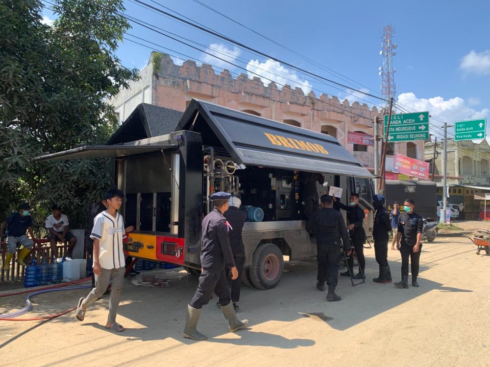 Headline.co.id, Nagan Raya ~ Aceh — Personel dari Kompi 3 Batalyon C Pelopor, Polda Aceh, melakukan penyaluran air bersih dan pembagian masker kepada warga yang terdampak banjir di Kecamatan Tripa Makmur, Kabupaten Nagan Raya, pada Sabtu (6/12/2025) pukul 16.00 WIB. Kegiatan ini dipimpin oleh Wadanki 3 Batalyon C Pelopor, Ipda Ulil Azmi Azwni, S.E. Tujuan dari penyaluran air bersih ini adalah untuk membantu masyarakat yang mengalami kesulitan mendapatkan air layak konsumsi akibat banjir. Selain itu, masker dibagikan untuk melindungi warga dari debu tebal yang dihasilkan oleh lumpur yang mengering dan dapat mengganggu kesehatan pernapasan.