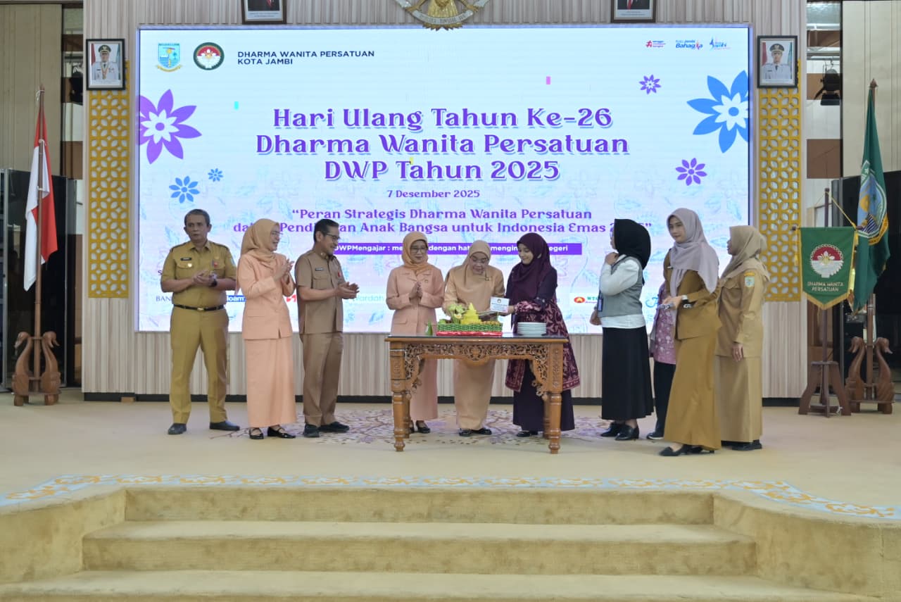 Headline.co.id, Jambi ~ Dharma Wanita Persatuan (DWP) Kota Jambi menegaskan pentingnya peran perempuan dalam meningkatkan kualitas sumber daya manusia sejak dari keluarga, sebagai langkah menuju Indonesia Emas 2045. Hal ini disampaikan dalam puncak peringatan Hari Ulang Tahun (HUT) ke-26 DWP Kota Jambi yang berlangsung di Aula Griya Mayang, Rumah Dinas Wali Kota Jambi, pada Selasa (9/12/2025).