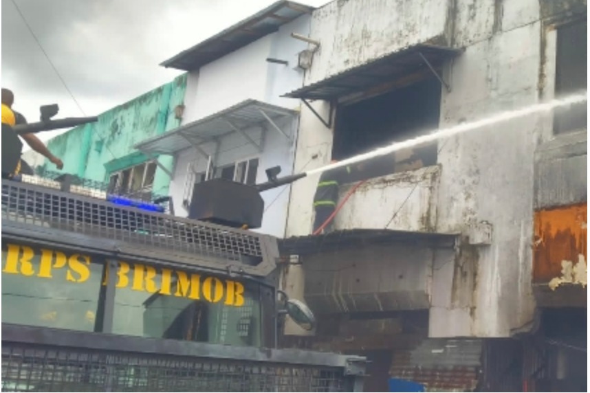 Headline.co.id, Batu ~ Maluku. Satuan Brimob Polda Maluku bergerak cepat menanggapi kebakaran yang terjadi di Kompleks Pertokoan Blok G, Desa Batu Merah, kawasan Pasar Mardika Ambon, pada Kamis (12/12/25). Dengan mengerahkan satu unit Ransus Water Cannon dan empat personel, tim Brimob segera menuju lokasi untuk membantu memadamkan api. Brigadir Mezach Yansen Mataheru, sebagai operator Ransus, bersama timnya, berkoordinasi dengan petugas pemadam kebakaran, instansi terkait, dan warga setempat untuk mengendalikan situasi.