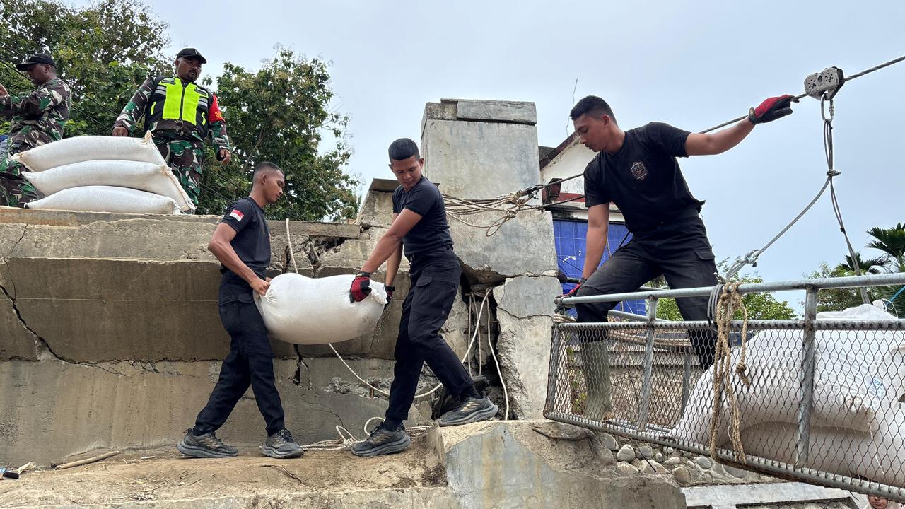 Headline.co.id, Personel Sar Satuan Brimob Polda Aceh Telah Menyalurkan Bantuan Logistik Kepada Masyarakat Terdampak Bencana Di Desa Kubu ~ Bireuen. Bantuan ini disalurkan dengan memanfaatkan jembatan Sling Baja. Kabid Humas Polda Aceh, Kombes Pol. Joko Krisdiyanto, S.I.K, menyampaikan pada Senin, 15 Desember 2025, bahwa bantuan tersebut terdiri dari bahan makanan dan selimut.