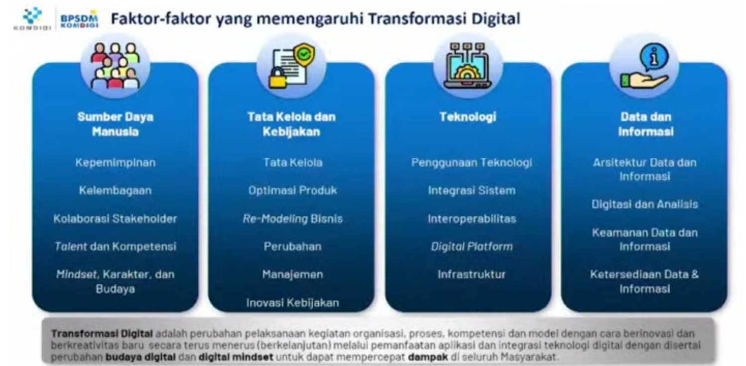 Bonifasius juga menyoroti empat pilar transformasi digital nasional, yakni Infrastruktur Digital, Pemerintahan Digital, Ekonomi Digital, dan Masyarakat Digital. Dari keempat pilar tersebut, pemberdayaan masyarakat digital (digital empowerment) masih lemah. Pada 2025, indeks pemberdayaan masyarakat digital diproyeksikan baru mencapai 34,32 persen, jauh tertinggal dibandingkan pembangunan infrastruktur yang bersifat mandatory. “Kalau manusianya tidak memanfaatkan teknologi untuk nilai ekonomi, pengetahuan, atau manfaat sosial, maka dampaknya tidak akan signifikan,” jelasnya.