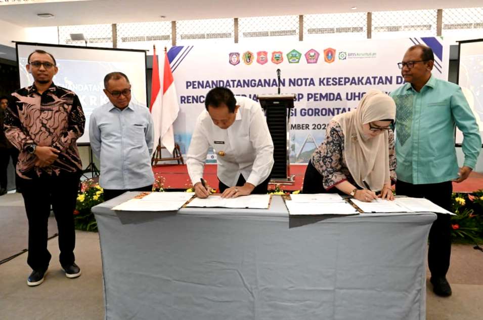 Acara kerja sama yang berfokus pada Pekerja Bukan Penerima Upah (PBPU) dan Bukan Pekerja Pemerintah Daerah (BP Pemda) untuk mencapai Universal Health Coverage (UHC) ini juga dihadiri oleh Wakil Ketua DPRD Provinsi Gorontalo Laode Haimudin, Sekretaris Daerah Sofian Ibrahim, serta seluruh bupati dan wali kota se-Gorontalo.