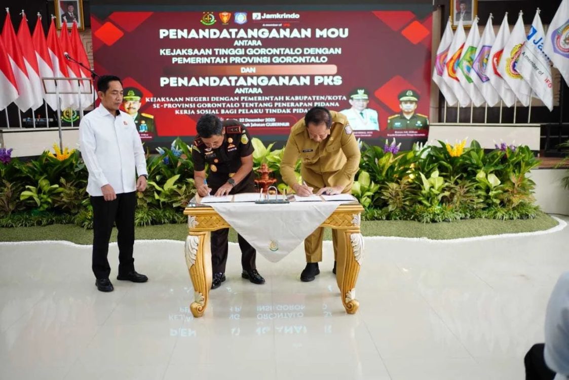 Headline.co.id, Gubernur Gorontalo ~ Gusnar Ismail, menyatakan dukungan penuh terhadap rencana penerapan Pidana Kerja Sosial yang akan mulai diberlakukan pada tahun 2026. Dukungan ini disampaikan dalam acara penandatanganan Nota Kesepahaman (MoU) Pemerintah Daerah, Kejaksaan, dan Jamkrindo yang berlangsung di Aula Rumah Jabatan Gubernur Gorontalo pada Senin, 22 Desember 2025.