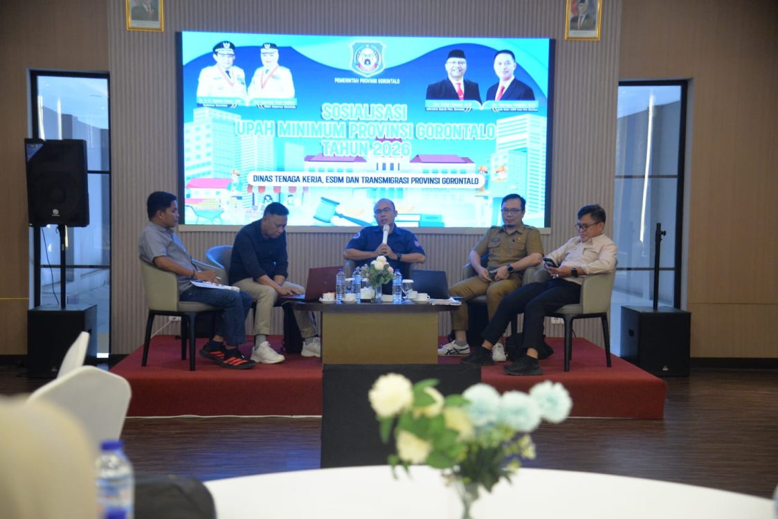 Headline.co.id, Dinas Tenaga Kerja ~ Energi dan Sumber Daya Mineral serta Transmigrasi Provinsi Gorontalo mengadakan sosialisasi terkait Upah Minimum Provinsi (UMP) tahun 2026 pada Selasa, 23 Desember 2025. Acara ini dilaksanakan setelah Gubernur Gorontalo, Gusnar Ismail, menetapkan besaran UMP melalui Surat Keputusan Gubernur No.434/34/XII/2025. Sosialisasi ini bertujuan untuk memastikan penerapan UMP yang merata di seluruh wilayah Provinsi Gorontalo.