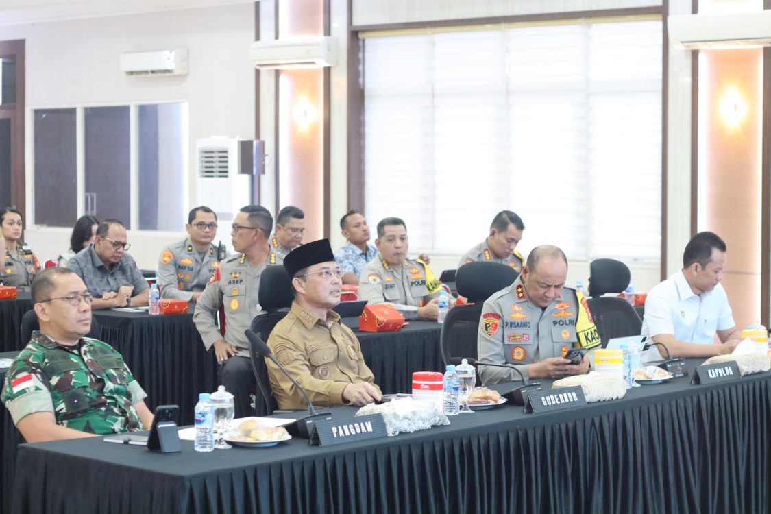 Gubernur Kalbar, Ria Norsan, mengikuti Rapat Koordinasi Lintas Sektoral tingkat menteri yang diadakan secara virtual dari Aula Graha Khatulistiwa Polda Kalimantan Barat pada Selasa, 23 Desember 2025. Kegiatan ini bertujuan untuk menyelaraskan kebijakan guna menjamin kelancaran dan ketertiban perayaan akhir tahun.