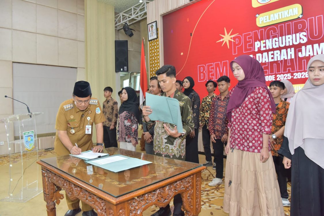 Headline.co.id, Jambi ~ Wali Kota Jambi, Maulana, secara resmi melantik Pengurus Badan Eksekutif Mahasiswa (BEM) Daerah Jambi untuk periode 2025–2026. Acara pelantikan ini berlangsung di Aula Griya Mayang, Rumah Dinas Wali Kota Jambi, pada Selasa (23/12/2025). Pelantikan ini bertujuan untuk memperkuat peran mahasiswa sebagai mitra strategis pemerintah daerah dalam mewujudkan pembangunan berkelanjutan di Kota Jambi.