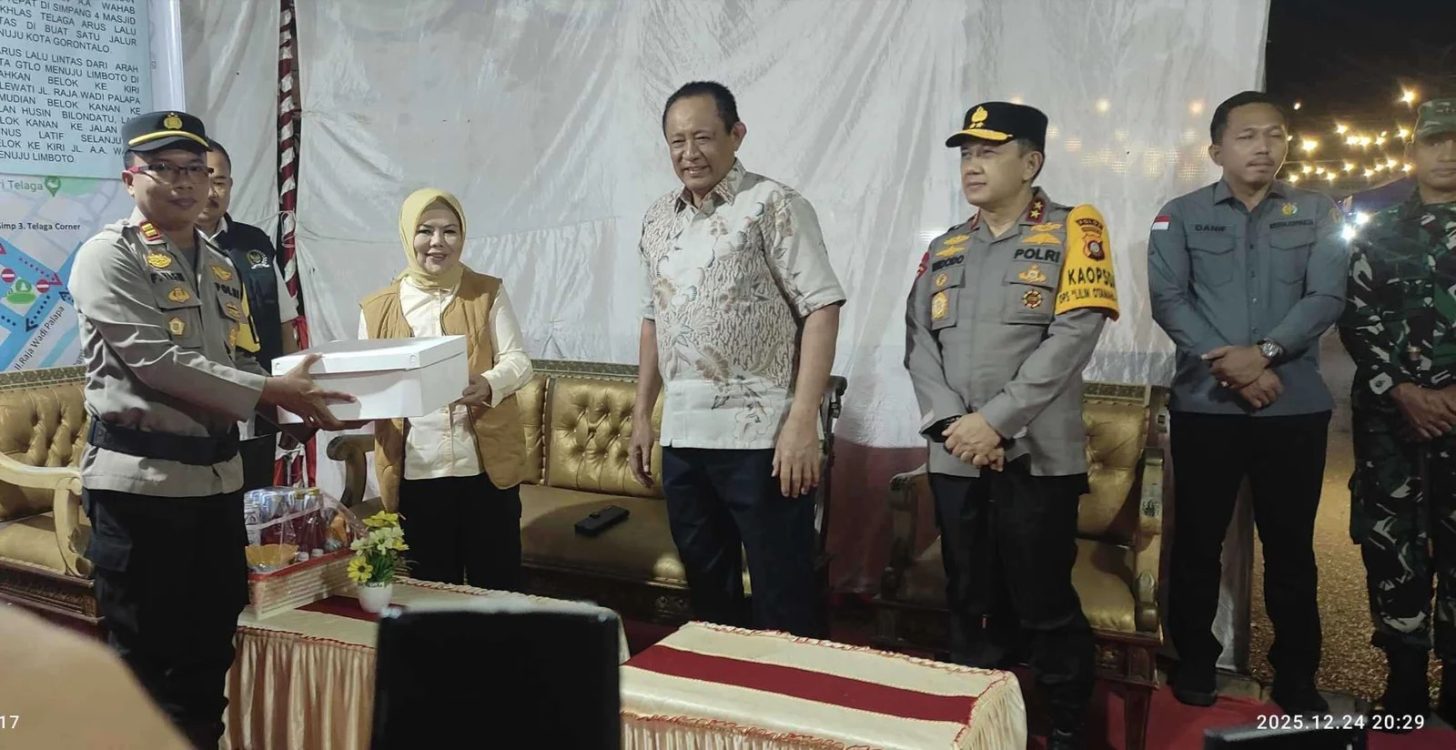 Headline.co.id, Gorontalo ~ Pemerintah Provinsi Gorontalo memastikan kesiapan pengamanan menjelang perayaan Natal dan Tahun Baru. Gubernur Gorontalo Gusnar Ismail, didampingi Wakil Gubernur Idah Syahidah RH, dan Kapolda Gorontalo Irjen Pol. Widodo, melakukan peninjauan langsung ke Pos Pengamanan pada Rabu, 24 Desember 2025. Peninjauan ini juga dihadiri oleh Ketua DPRD Provinsi Gorontalo Thomas Mopili dan Wakil Bupati Gorontalo Tonny Yunus.