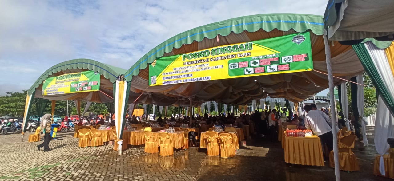 Headline.co.id, Tapin ~ Pemerintah Kabupaten Tapin menunjukkan komitmen dalam memberikan pelayanan optimal kepada jemaah pada momentum 5 Rajab dengan menyiapkan rest area lengkap di Ruang Terbuka Publik (RTP) Rantau Baru, Senin (29/12/2025). Lokasi ini menjadi titik singgah strategis bagi jemaah yang melintas menuju maupun kembali dari Sekumpul, Martapura. Di area tersebut, Pemerintah Kabupaten Tapin menyediakan berbagai layanan gratis, mulai dari pelayanan kesehatan, bengkel kendaraan, hingga tempat istirahat yang nyaman. Langkah ini diambil untuk memastikan keselamatan, kenyamanan, dan kesehatan jemaah selama perjalanan panjang.