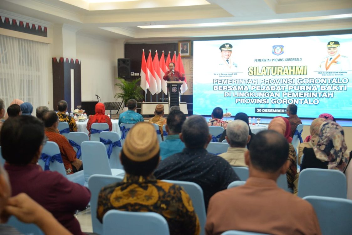 Headline.co.id, Gorontalo ~ Pemerintah Provinsi Gorontalo mengadakan acara silaturahmi dengan para Aparatur Sipil Negara (ASN) yang telah memasuki masa purnabakti. Acara ini berlangsung di Aula Rumah Jabatan Gubernur pada Selasa, 30 Desember 2025. Pertemuan tersebut dihadiri oleh ASN dari berbagai periode kepemimpinan, mulai dari Penjabat Gubernur Tursandi Alwi pada tahun 2000 hingga Gubernur Gorontalo Gusnar Ismail dan Wakil Gubernur Idah Syahidah Rusli Habibie di tahun 2025.