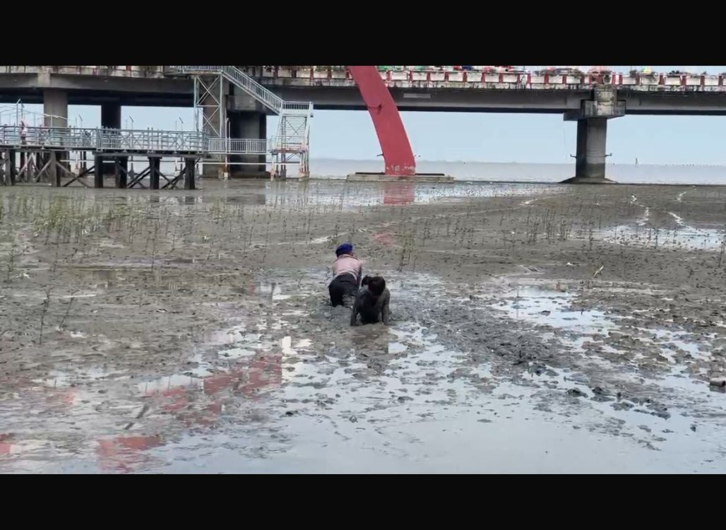 Headline.co.id, Surabaya ~ Personel Direktorat Polisi Perairan dan Udara (Dit Polairud) Polda Jawa Timur melakukan pengamanan di kawasan wisata Pantai Kenjeran, Surabaya, ketika menemukan dua anak terjebak di lumpur akibat air laut yang surut. Kedua anak tersebut tidak dapat bergerak dan terjebak di tengah lumpur tebal, sehingga memerlukan pertolongan segera. Personel Dit Polairud yang sedang bertugas langsung melakukan evakuasi dan berhasil menyelamatkan kedua anak tersebut. Proses penyelamatan dilakukan oleh Bharada Nevan, staf Renmin Dit Polairud Polda Jatim.