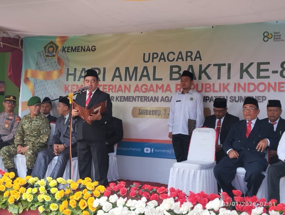 Headline.co.id, Sumenep ~ Kantor Kementerian Agama Kabupaten Sumenep menegaskan komitmen untuk memperkuat kerukunan umat beragama dan sinergi lintas sektor dalam peringatan Hari Amal Bhakti (HAB) ke-80 Kementerian Agama Republik Indonesia. Acara ini berlangsung di Lapangan MAN Sumenep pada Sabtu (3/1/2026).