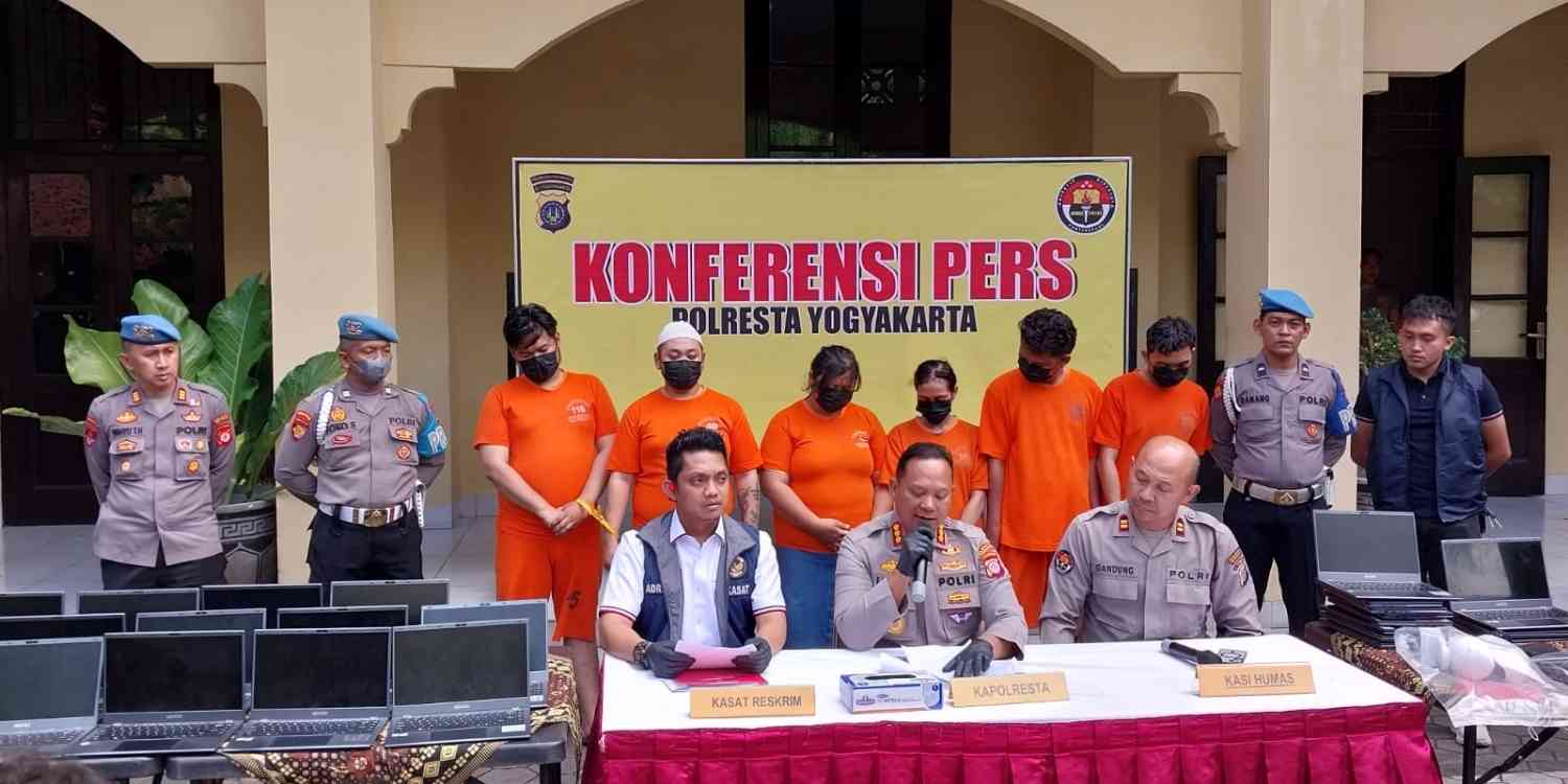 Kasihumas Polresta Yogyakarta Iptu Gadung Harjunandi menambahkan, polisi juga menyita sejumlah barang bukti, di antaranya 50 unit laptop, 30 unit handphone, empat kamera CCTV, serta dua router wifi yang digunakan untuk mendukung operasional kejahatan tersebut.
