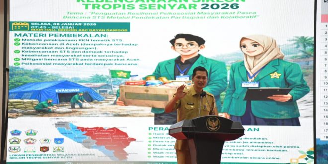 Headline.co.id, Banda Aceh ~ Sekretaris Daerah (Sekda) Aceh, M. Nasir, mengajak mahasiswa untuk berperan aktif dalam pemulihan masyarakat pascabencana hidrometeorologi yang melanda beberapa wilayah di Provinsi Aceh. Ajakan ini disampaikan M. Nasir saat menjadi narasumber dalam acara Pembekalan Kuliah Kerja Nyata (KKN) Tematik Kebencanaan Siklon Tropis Senyar Universitas Syiah Kuala (USK) yang berlangsung di Aula Utama Gedung AAC Dayan Dawood, Selasa (6/1/2026).