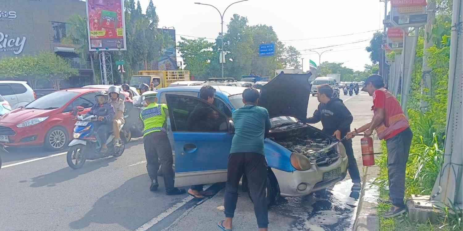 Berdasarkan hasil pengecekan di lapangan dan keterangan saksi, mobil Hyundai Atos berwarna biru silver tersebut mendadak mengeluarkan asap dan api dari ruang mesin saat melintas di persimpangan. Melihat kejadian itu, pemilik kendaraan bersama sejumlah pengguna jalan segera melakukan pemadaman secara manual hingga api berhasil dipadamkan.