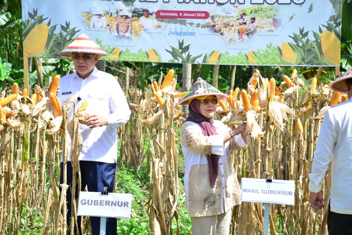Headline.co.id, Bone ~ Pemerintah Provinsi Gorontalo menargetkan produksi jagung mencapai 1,5 juta ton pada tahun 2026. Target ini merupakan bagian dari dukungan daerah terhadap program swasembada pangan nasional yang dicanangkan oleh pemerintah pusat. Kepala Dinas Pertanian Provinsi Gorontalo, Muljady Mario, menyampaikan hal tersebut dalam acara panen raya jagung serentak yang diadakan oleh Polri di 36 polda se-Indonesia pada Kamis, 8 Januari 2026. Di Gorontalo, acara ini diikuti secara daring oleh Gubernur Gorontalo Gusnar Ismail, Kapolda Gorontalo Irjen Pol. Widodo, dan Wakil Gubernur Idah Syahidah Rusli Habibie.