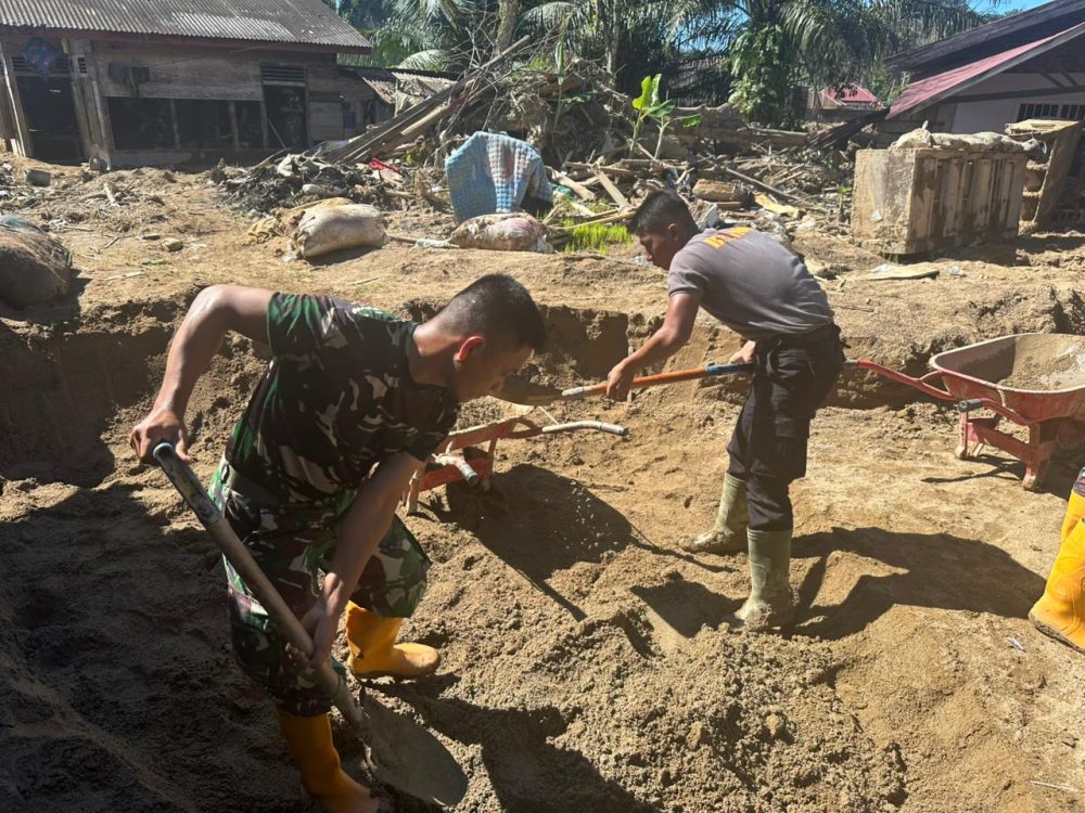 Headline.co.id, Batang ~ Tapanuli Selatan — Personel Batalyon C Satbrimob Polda Sumatera Utara melanjutkan upaya pemulihan pascabencana banjir bandang yang melanda Kecamatan Batang Toru, Kabupaten Tapanuli Selatan. Fokus kegiatan ini berada di Desa Huta Godang dan Desa Garoga, dengan tujuan utama membersihkan rumah warga serta membangun fasilitas sanitasi dan air bersih untuk kepentingan umum.