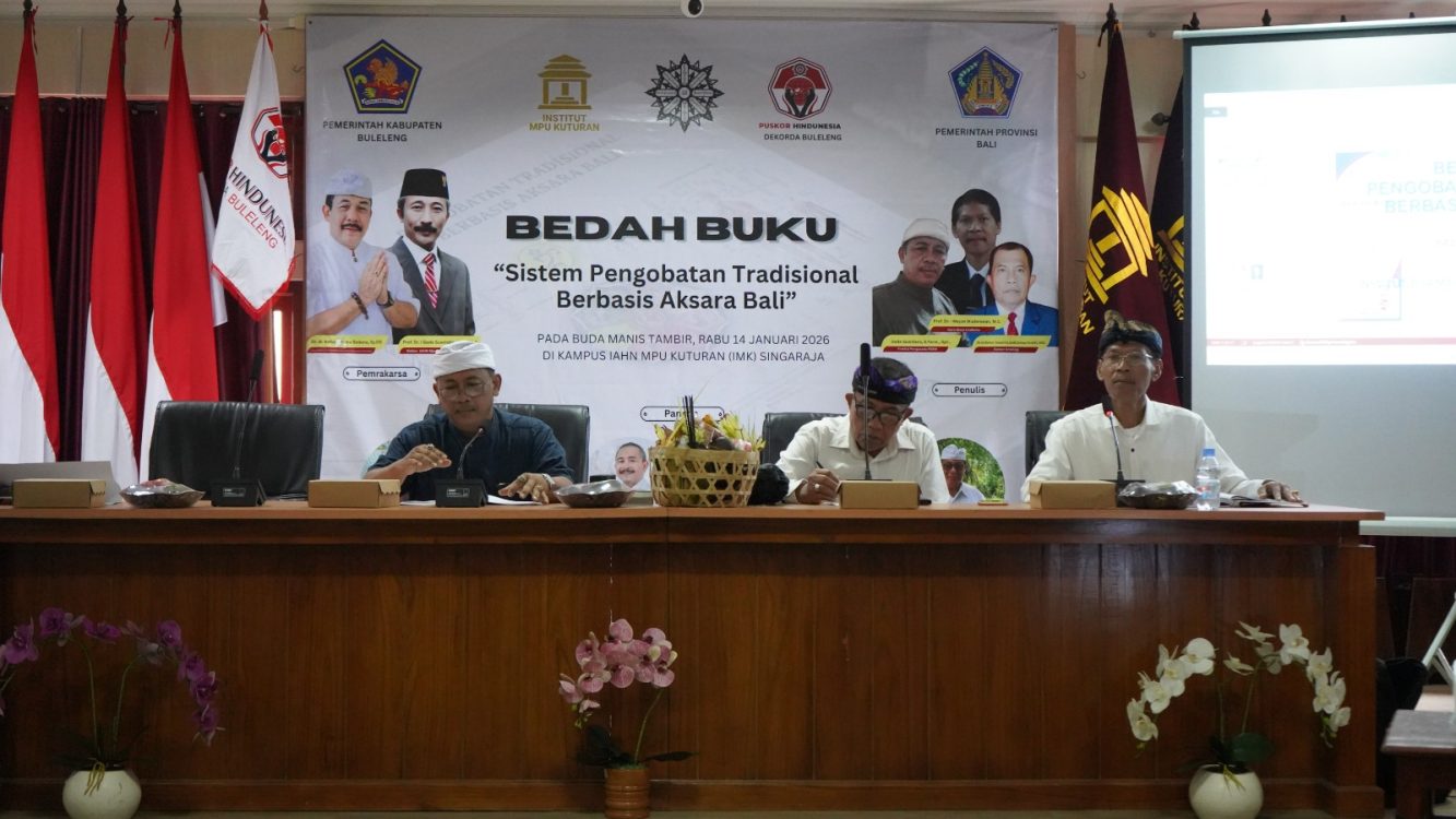 Headline.co.id, Buleleng ~ Seminar bedah buku tentang sistem pengobatan tradisional berbasis aksara Bali telah sukses menjadi forum diskusi strategis untuk memperdalam pemahaman mengenai kesehatan holistik yang berakar pada kearifan lokal Bali. Acara ini berlangsung di Aula Rektorat Institut Agama Hindu Negeri (IAHN) Mpu Kuturan Singaraja pada Rabu, 14 Januari 2026, dan dihadiri oleh perwakilan dari pemerintah daerah, pemerintah provinsi, akademisi, tokoh budaya, serta pemerhati kesehatan.