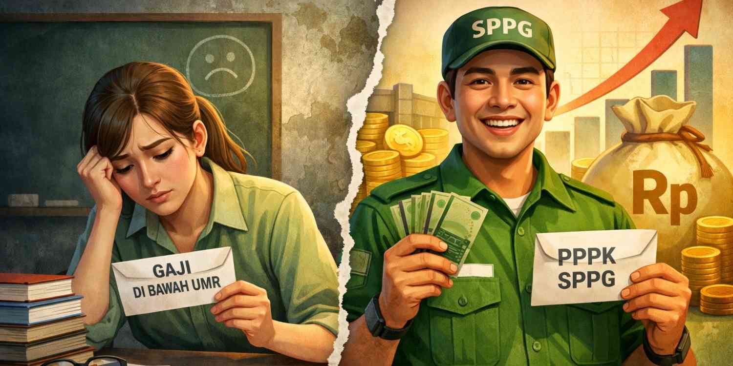Headline.co.id, Jogja ~ Seorang guru swasta di Yogyakarta mengungkapkan keresahan atas kondisi kesejahteraan tenaga pendidik yang dinilai masih jauh dari layak. Repi (30), bukan nama sebenarnya, mengaku telah bertahun-tahun mengabdi sebagai guru, namun penghasilannya tetap berada di bawah upah minimum regional (UMR). Keluhan itu disampaikannya kepada Headline.co.id pada Januari 2026 di Yogyakarta, menyusul kabar pengangkatan pegawai Satuan Pelaksana Program Gizi (SPPG) menjadi PPPK. Ia menilai kebijakan tersebut memperlihatkan ketimpangan perhatian negara terhadap sektor pendidikan.