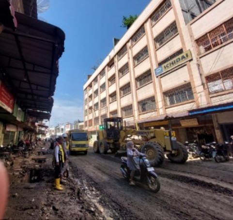 Menurut Ali, rata-rata 7 hingga 8 unit alat berat seperti grader, ekskavator, dan alat pendukung lainnya digunakan setiap hari. Semua peralatan berasal dari Dinas PU dan disesuaikan dengan kebutuhan di lapangan, terutama pada jalan utama pasar yang terdampak parah. “Kondisinya tidak bisa disamaratakan. Ada titik yang perlu alat besar, ada juga yang manual. Jadi penanganannya menyesuaikan kebutuhan,” jelasnya.