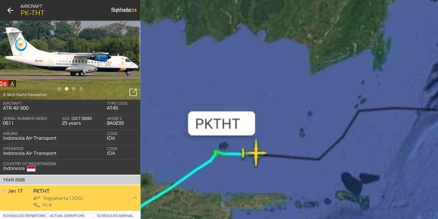 Headline.co.id, Maros ~ Pesawat milik Indonesia Air Transport (IAT) jenis ATR 42-500 dengan registrasi PK-THT dilaporkan hilang kontak di wilayah Kabupaten Maros, Sulawesi Selatan, Sabtu (17/1/2026). Pesawat yang terbang dari Bandara Adi Sucipto Yogyakarta menuju Bandara Sultan Hasanuddin Makassar itu membawa 11 orang dan terakhir terpantau di sekitar kawasan Leang-leang. Hingga sore hari, Badan Nasional Pencarian dan Pertolongan (Basarnas) masih melakukan operasi pencarian intensif. Komunikasi dengan pesawat terputus saat proses pendekatan menuju landasan pacu Makassar.