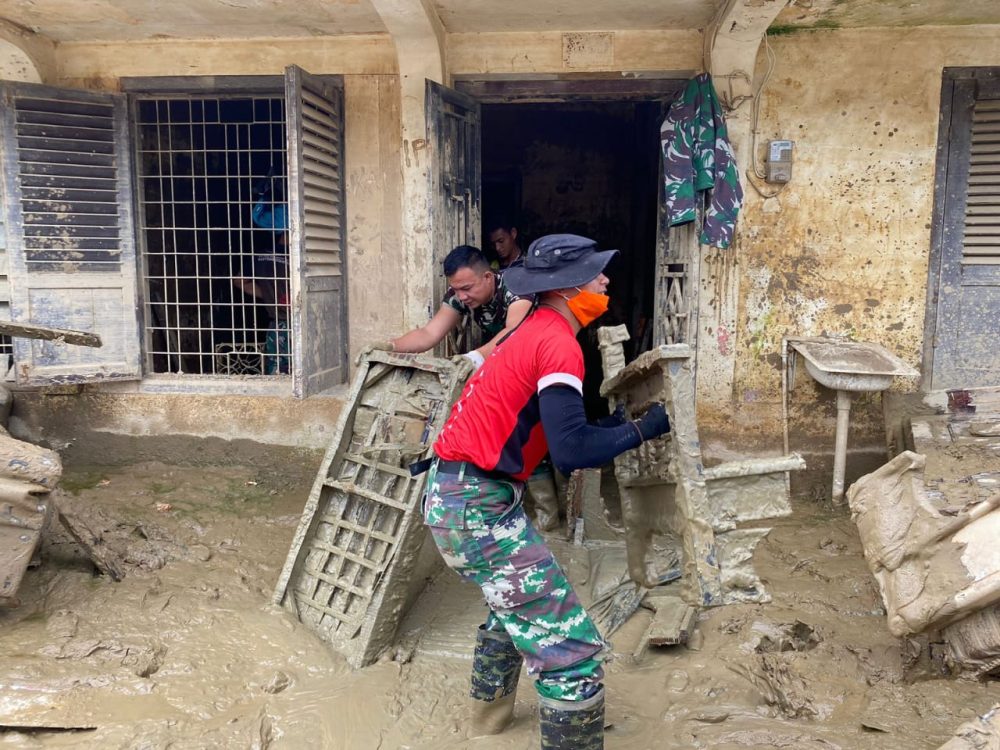 Menanggapi situasi ini, prajurit Yonif 115/Macan Leuser melakukan pembersihan secara gotong royong menggunakan peralatan lapangan sederhana. Lumpur dan sampah sisa banjir diangkat, sementara saluran air dinormalisasi agar aliran kembali lancar dan lingkungan perkantoran dapat digunakan dengan aman.