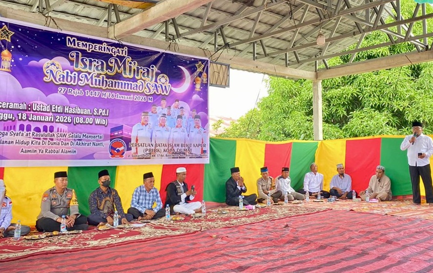 Peringatan Isra Mi’raj tersebut juga diisi dengan tausiyah oleh Ustadz Efdi Hasibuan yang membahas makna perintah salat serta pentingnya menjaga integritas moral di tengah tantangan kehidupan modern. Acara ini ditutup dengan doa bersama untuk keberkahan masyarakat Kota Dumai. Kegiatan ini turut dihadiri oleh unsur Bhabinkamtibmas Kelurahan Bukit Kayu Kapur, pengurus PBIBK, tokoh agama, tokoh masyarakat, serta ratusan warga setempat.