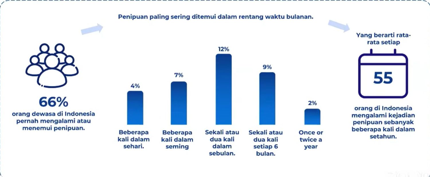 Fenomena ini sejalan dengan riset Global Anti-Scam Alliance (GASA) Indonesian Chapter, yang menyebut hampir dua dari tiga orang dewasa di Indonesia pernah menghadapi upaya penipuan, dengan rata-rata percobaan terjadi setidaknya sekali dalam sepekan. Menariknya, sekitar 86 persen responden merasa yakin mampu mengenali scam, namun 35 persen di antaranya tetap menjadi korban. “Kepercayaan diri berlebihan atau overconfidence justru menjadi celah. Banyak korban berasal dari kelompok berpendidikan tinggi dan ekonomi mapan,” ungkap Nanik.