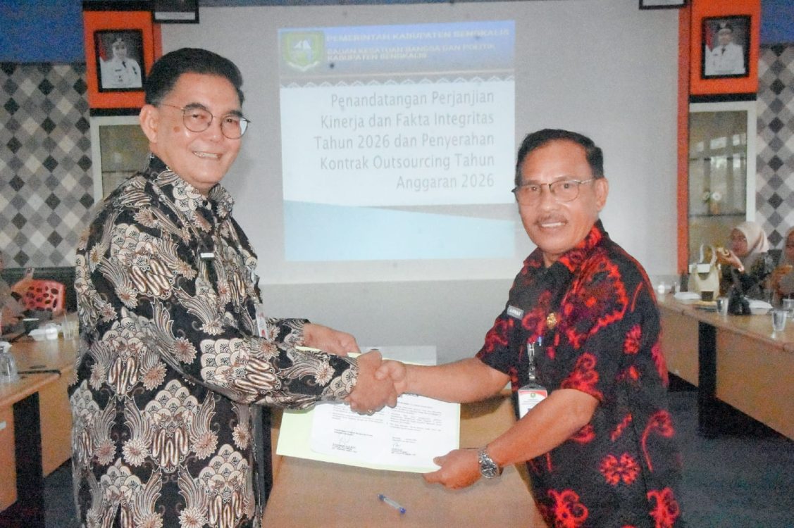 Headline.co.id, Bengkalis ~ Badan Kesatuan Bangsa dan Politik (Kesbangpol) Kabupaten Bengkalis menggelar acara Penandatanganan Perjanjian Kinerja dan Pakta Integritas Tahun 2026 serta Penyerahan Surat Keputusan (SK) Outsourcing. Acara ini berlangsung pada Kamis (22/1/2026) di Ruang Rapat Lantai 2 Kesbangpol Bengkalis. Kegiatan ini bertujuan untuk memperkuat komitmen Kesbangpol Bengkalis dalam mendukung pemerintahan yang bersih dan berintegritas, serta meningkatkan kinerja dan pelayanan publik di tahun anggaran 2026.