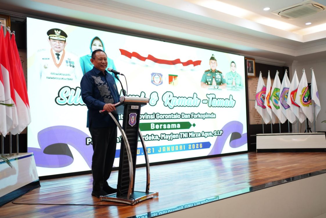 Headline.co.id, Pemerintah Provinsi Gorontalo Menyambut Kedatangan Pangdam Xiii Merdeka ~ Mayjen TNI Mirza Agus, dalam acara ramah tamah yang berlangsung di aula rumah jabatan Gubernur pada Rabu, 21 Januari 2026. Kunjungan ini dimanfaatkan untuk memperkuat sinergi pemerintah daerah dan TNI dalam mendukung pembangunan serta kesejahteraan masyarakat Gorontalo.