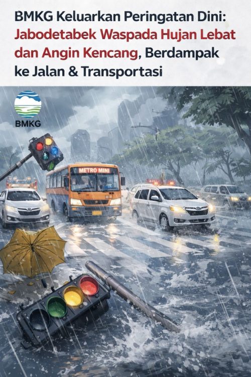 BMKG memperkirakan hampir seluruh wilayah Jabodetabek akan diselimuti awan tebal sejak pagi, dengan hujan ringan hingga sedang mulai turun di beberapa area. Intensitas hujan diprediksi meningkat menjadi sedang hingga lebat, terutama di Jakarta Selatan, Jakarta Timur, sebagian Kabupaten dan Kota Tangerang, serta Bekasi. Kondisi ini berpotensi mengganggu kelancaran mobilitas di jalan raya akibat jalan yang basah, genangan air, dan berkurangnya jarak pandang.