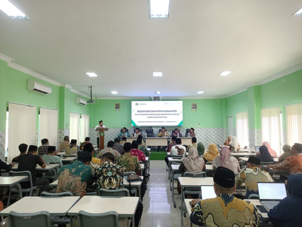 Kegiatan ini dipimpin oleh Kepala Kantor Kemenag Kabupaten Sumenep, Abdul Wasid, dan berlangsung di Gedung Workshop MAN Sumenep pada Kamis (22/1/2026). Abdul Wasid menegaskan bahwa bedah DIPA dan penyusunan RPD adalah fondasi penting dalam membangun tata kelola keuangan yang terencana, transparan, dan akuntabel di seluruh satuan kerja Kemenag Sumenep.